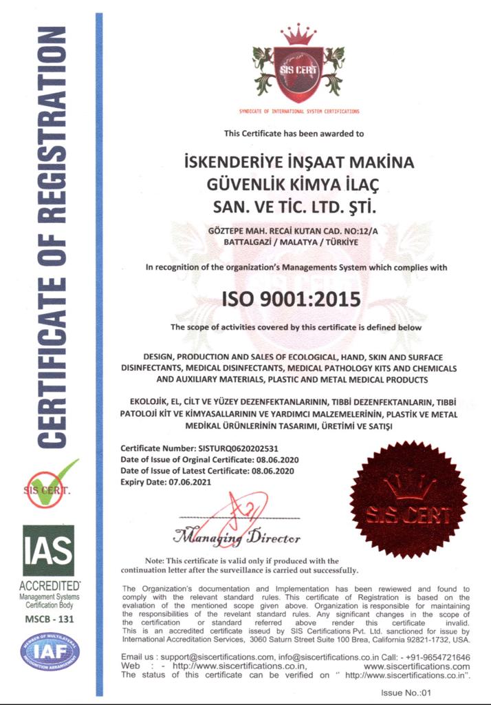 İSKENDERİYE İnşaat Makina Güvenlik Kimya İlaç Sanayi ve Ticaret Ltd. Şti. olarak; makina ve otomasyon alanında dolum makinaları, kapatma makinaları, etiketleme makinaları, güvenlik sistemleri alanında kamera sistemleri, x-ray cihazları, bagaj kontrol cihazları, el dedektörleri ve diğer güvenlik malzemeleri, inşaat hizmetleri alanında inşaat taahhüt, proje ve danışmanlık hizmetleri, bina revizyon ve performans analiz hizmetleri sunmanın yanı sıra, kimya ve ilaç sanayisinde bir çok BİO-ZEN F dezenfektan ürünleri sunmaktayız.